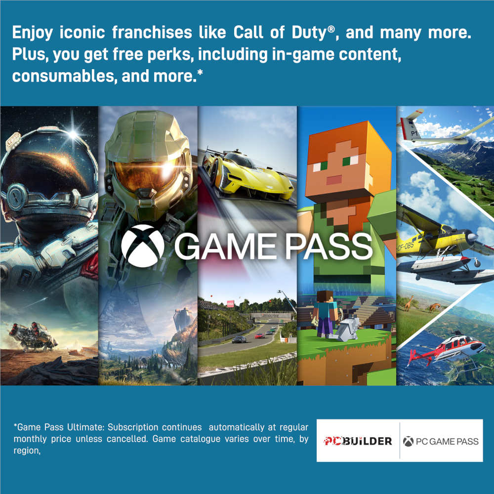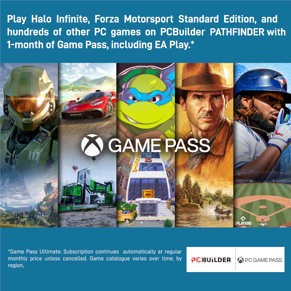 The PCBuilder PATHFINDER Windows 11 Gaming PC also includes six months of PC Game Pass including EA Play. Play over 100 high-quality PC games, in various genres such as Halo Infinite, Forza Horizon 5, and Minecraft on your new gaming rig. With new games added all the time, there’s always something new to play from day one.